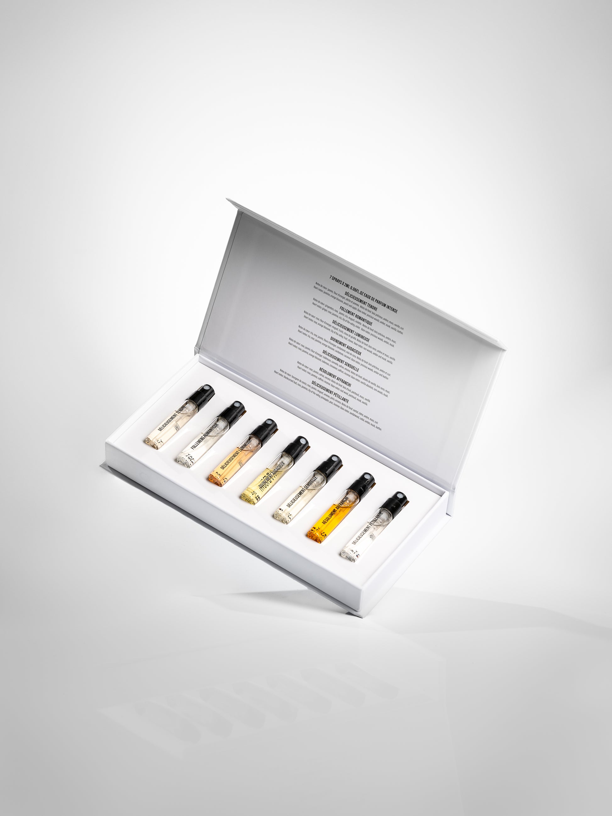 Découvrez l’univers olfactif de la Maison HAROLD & MAUDE, au travers de ce magnifique coffret de sept échantillons sprays 2ml !